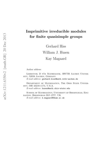 Find an ideal location to read - Whilst you'll find people who can make amends for some examining even when travelling in a loud bus, if you are the kind that is easily distracted, then you should find yourself a good destination to do your looking at from. Generally, the place ought to be tranquil and cozy and that means you will be able to relax and give full attention to the Imprimitive Irreducible Modules For Finite Quasisimple Groups reserve that you will be looking at. It's also wise to find yourself a looking through position that is definitely most cozy; lying over a couch, prop your feet, whatever operates to suit your needs.