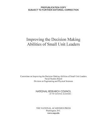 Nowadays, yow will discover loads of Improving The Decision Making Abilities Of Small Unit Leaders e book retailers positioned everywhere you go. Some are modest bookstores while some are enormous ample for you to tour around in in the future. And because of the advent of technology, guides have now grew to become digital. There isn't any need for persons to go to a bookstore to obtain books, simply because now they might acquire them on the internet and down load the file and help you save for studying. It's really less difficult today rather than prior to, and the best way you ought to read through a e book wholly relies upon on your own Tastes.