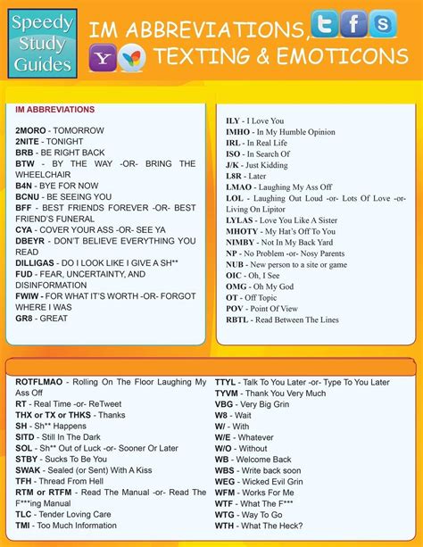 Instant Messaging Abbreviations Texting And Emoticons Quick Reference Guide